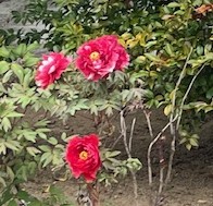 お寺の本堂前の牡丹が咲き始めました。 咲いてから1週間ほどしかもたない、儚いゆえにその美しさ…