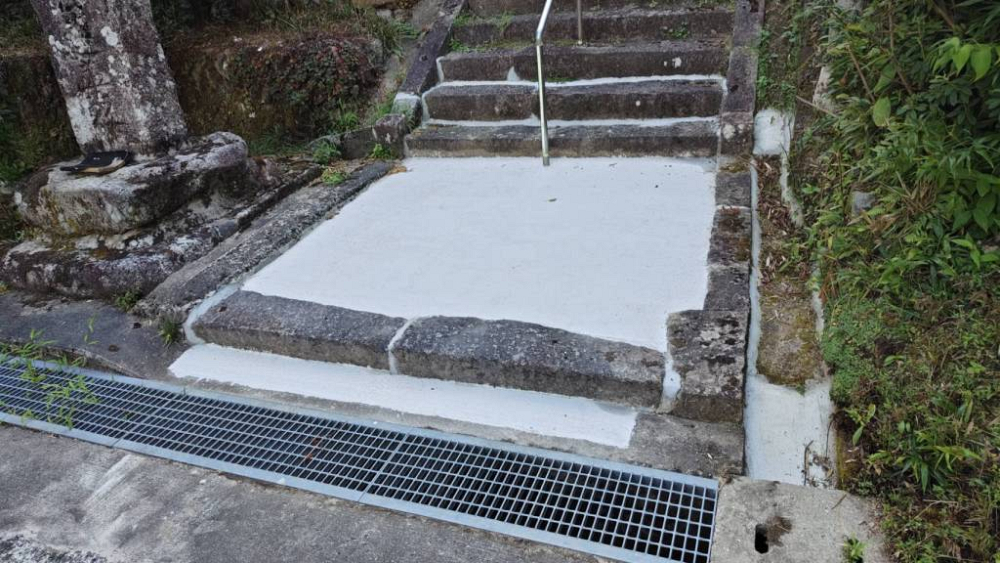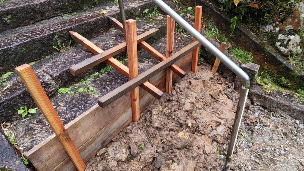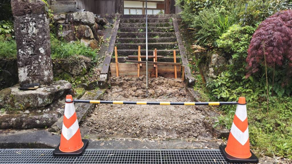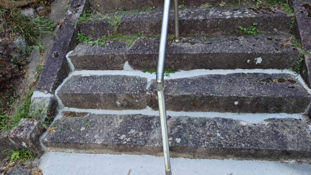 参道階段修復工事を行いました。 ブログ 記事公開日:2025年11月01日 参道階段工事中の様子① 参道階段工事中の様子② 参道階段工事中の様子③ 参道階段工事作業後① 参道階段工事作業後② 参道階段工事作業後③ 参道階段工事作業後④ 参道階段の損傷が激しく、水が湧出し苔が生えて危険でした。 令和6年5月から7月にかけて石段の排水処理と修繕を行いました。 PREV NEXT 一覧へ
