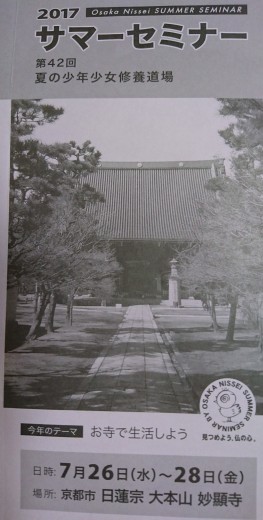 7月26日(水)~28日(金)の期間で大阪日蓮宗青年会主催で夏の少年少女修養道場ーサマーセミナーーが開催さ…