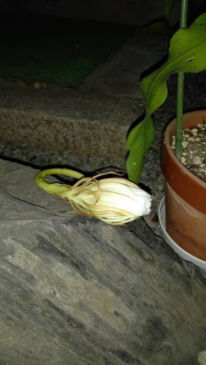 8月上旬にお檀家さんから「月下美人」という植木をいただき、昨晩、花を咲かせました。 「月下美…