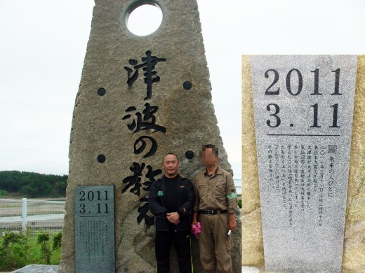 ※画像は気仙沼市立小泉小学校敷地に建立された、津波の教訓を未来に残す『津波記憶石』と呼ばれる石碑。石碑には「未来の人びとに」と刻まれ、昨年3月11日に此処で何が起こったかが記されている。またバーコードが埋め込まれていて、携帯電話のバーコードリーダーで読み込むと、震災前と震災後の小泉地区の様子などを知ることが出来る。