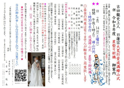 日蓮宗大荒行堂成満帰山式ご案内 合掌 昨年十一月一日より千葉県 日蓮宗大本山 中山法華経寺…