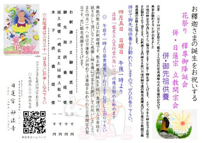 お釋迦さまの誕生をお祝いする 花祭り 釋尊御降誕会 *…