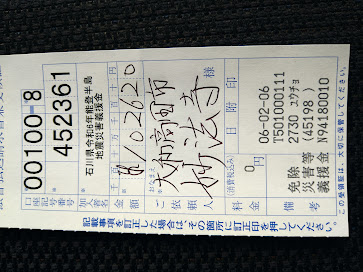 能登半島地震災害義援金として、昨年からお賽銭箱から取り出していなかった分と、星祭り時にお願い…