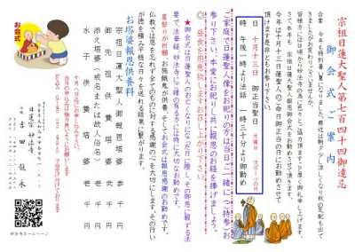 宗祖日蓮大聖人第七百四十四御遠忌 合掌 今年も特別暑い夏になりました。最近…