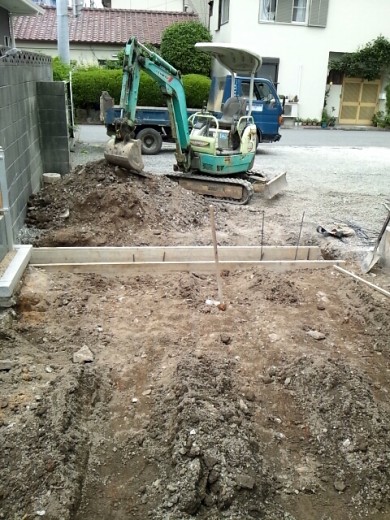 6月15日 金曜日 曇り 14日はお寺で会議があるため工事はお休み 15日から駐車場の舗装に入る前の付随…