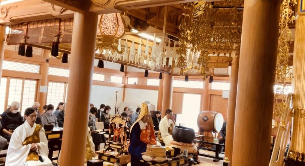 5人の僧侶が唱えられたお経は本堂に有り難く響き、晴天の春のお彼岸法要となりました。