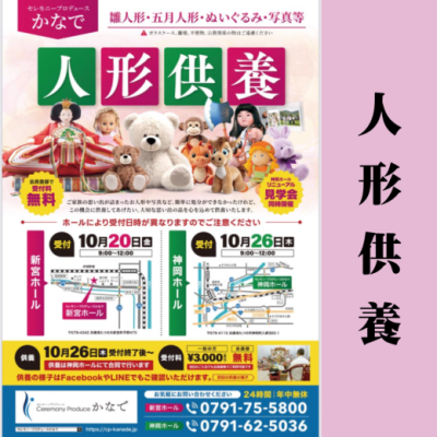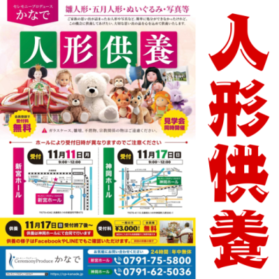 ?人形供養のご案内? この度 『Ceremony Produce かなで』様 と有難いご縁を頂き 『新宮ホール』…