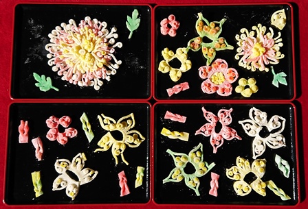 当山でも今年は花餅を作ってお供えしましたが、建部に伝わっている花餅とは少しデザインも異なっています。建部の花餅のほうが色鮮やかで、サイズも少々大きいですね。