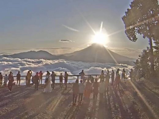 七面山ライブカメラの映像にて、「ダイアモンド富士」を見ることができました。