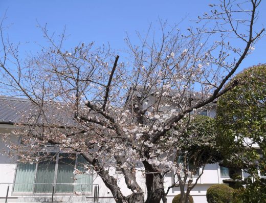 妙勝寺の中庭のソメイヨシノは二分咲きくらいになりました。24日の彼岸せがき法要には五分くらい咲きそうです。