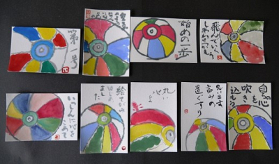 「最初の一歩」 さあ、第2回絵手紙くらぶ。今日は絵手紙を描くことに初めて挑戦(という生徒がほ…
