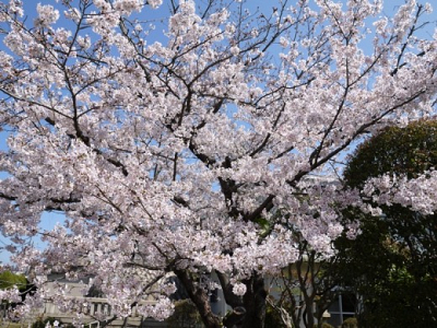 中庭のソメイヨシノが満開になりました。 今日はお天気も良く、温かい一日でした。 お昼過ぎ、4月…