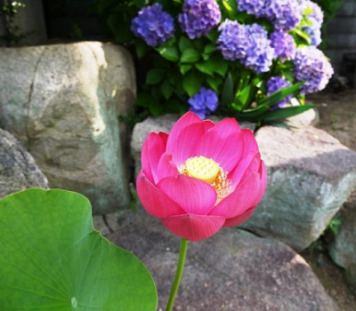 境内の宗祖御尊像前でささやかに育てている 蓮に美しい花がつきました。 花びらは開花後三日くら…