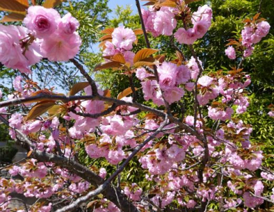 裏庭の八重桜も満開を迎えました。 毎年、ソメイヨシノよりも遅れて満開になります。 中庭の笹…