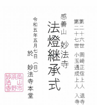 妙法寺様 法灯継承式
