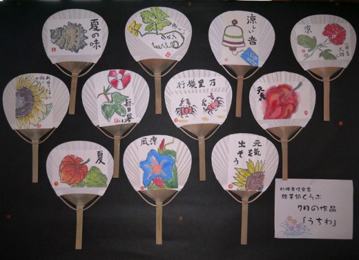 8月は絵手紙を使って「うちわ」を作りました。