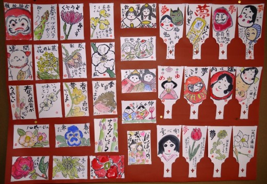 3月は自由課題。皆さんが持ち寄った春の花に囲まれて2枚、3枚と筆が進みました。