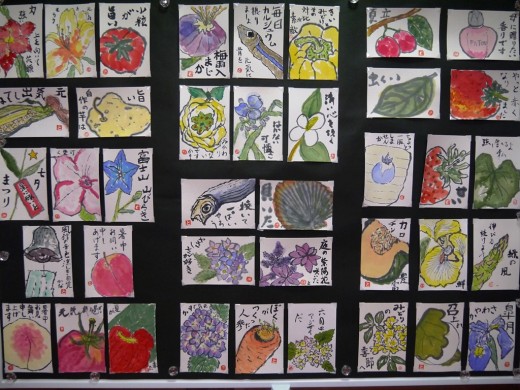 7月5日の夏祭りの際、本堂に5・6・7月の絵手紙くらぶの作品を展示しました。