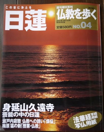 今年の法要後のお話は「仏事入門 日蓮聖人」と題して、最近刊行された『週刊朝日百科 仏教を歩く』シリーズ第4号、『この世に浄土を 日蓮』をテキストとして全員に配布して、日蓮聖人の御一生についてお話をしました。
