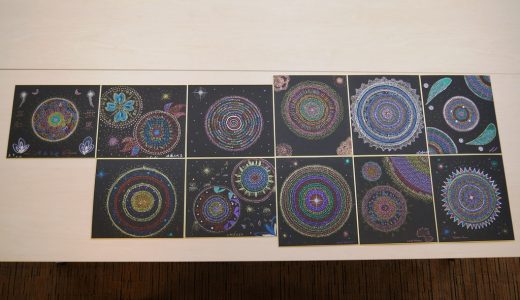 「ありがとう」の小さな文字を、円周に沿って中心からクルクルと「ありがとう ありがとう ありがとう ‥」と連なって描いて、美しい絵に仕上げるのが「ありがとう曼荼羅」です。