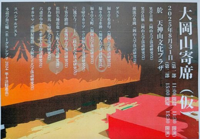 8月31日、天神山プラザで「大岡山寄席」が開催されます。 このイベントは、妙勝寺夏まつりで…