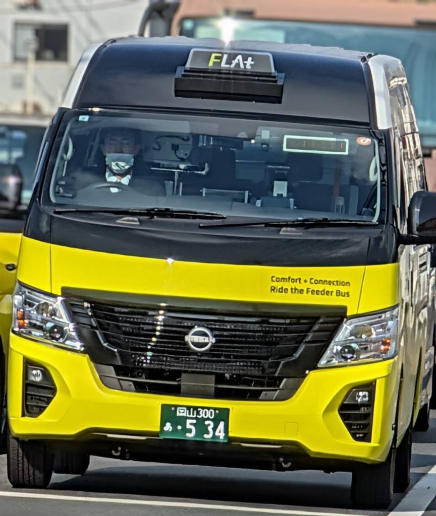 支線バスの愛称は「FLAT」。日産キャラバンの車両が使用され、定員は9名です。