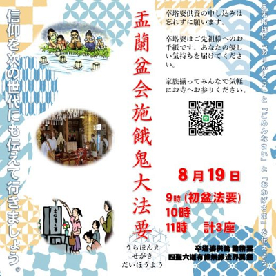 8月19日(火曜日) 『盂蘭盆会施餓鬼大法要』(うらぼんえせがきだいほうよう)が執り行わ…