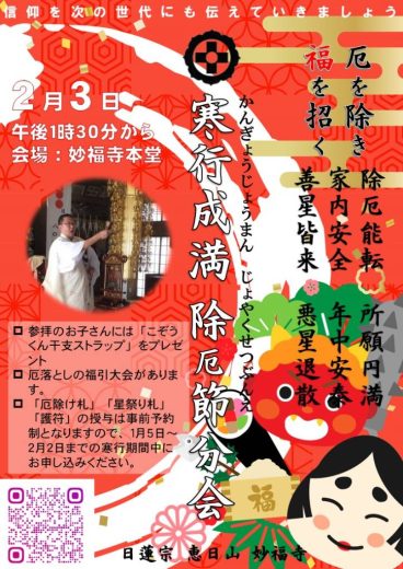 ◇「寒行成満除厄節分会」の御案内◇ 令和8年2月3日(火)「寒行成満除厄節分会」を厳修致しま…