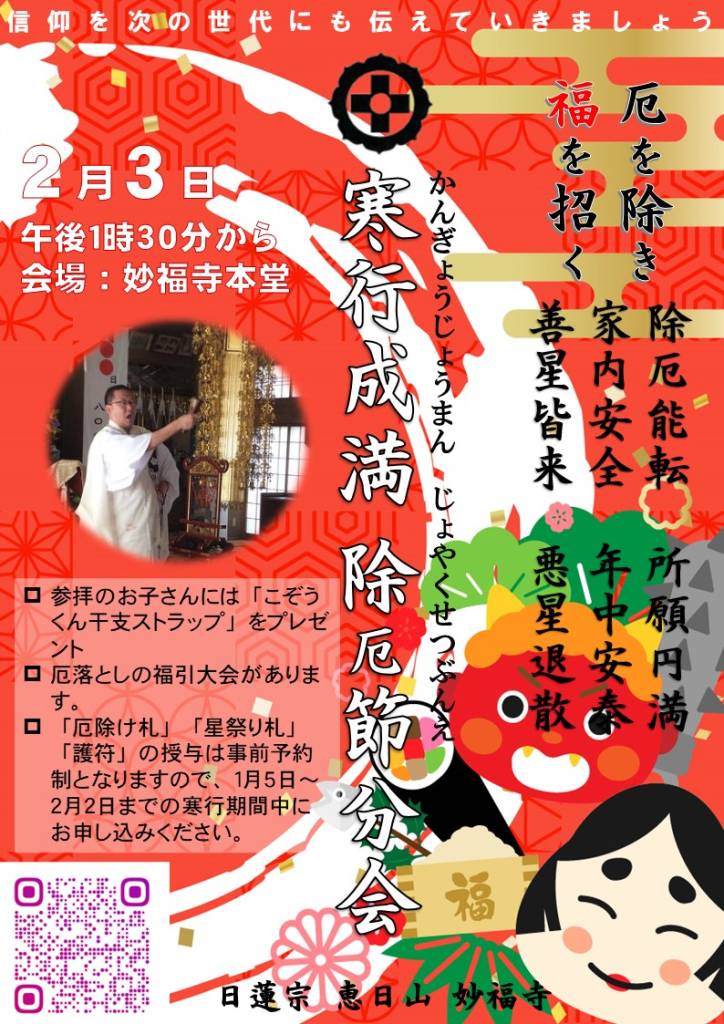 令和8年2月3日(火)「寒行成満除厄節分会」を厳修致します。