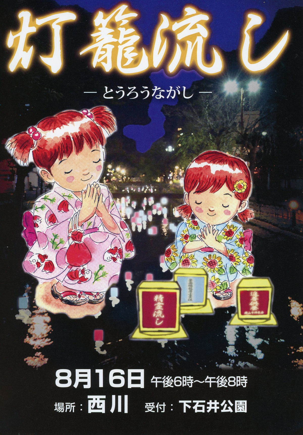 新盆にあたるお宅には灯籠をお送りしておりますので、是非当日は会場にお越しになり灯籠を流して頂きたいと思います。