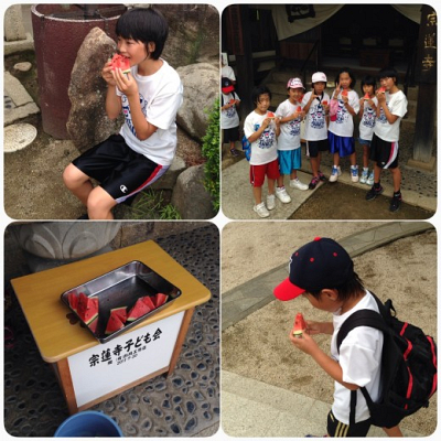 いただいたスイカを 走り終えた子ども達に出します。 一昔前は スイカを出そうものなら 我先の…