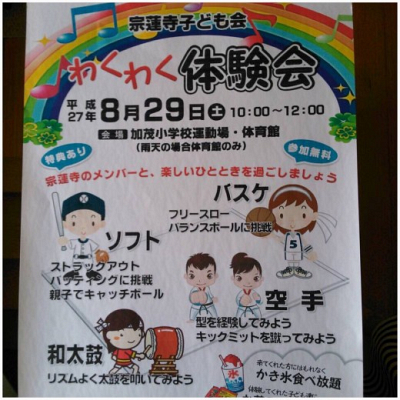 平成27年8月29日(土) 10:00~12:00 於:加茂小学校 宗蓮寺子ども会4団体 …