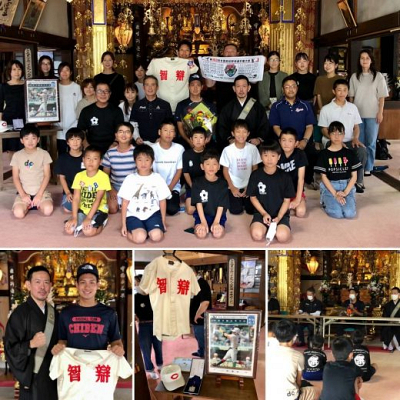 「準優勝報告会」 奈良・智辯学園 5番ファーストにして 宗蓮寺ソフトボールOB お寺へ挨拶に来てく…