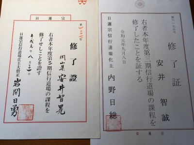 身延山の信行道場を終えた長男が帰って来ました。理想と使命感に燃えているようで、少々鼻息が荒い…