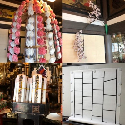 あさって13日は本栄寺のお会式大法要です。万燈もお会式桜もお札も、そしてあみだくじも、準備完了…