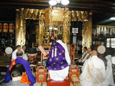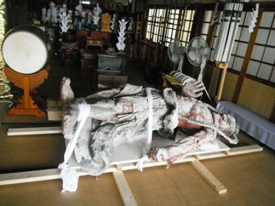 山門修理の為、仁王様を本堂へ安置しました