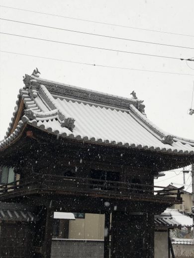 岡山は3センチの積雪で山門も雪化粧となりました。