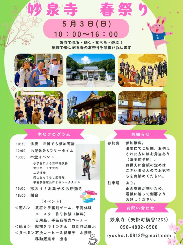 🌸妙泉寺 春祭り 開催のお知らせ(5月3日)🌸