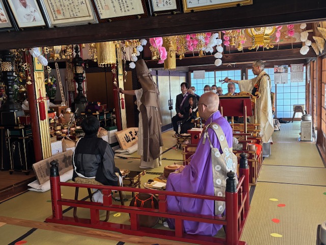 この日は、長らく製作していた #山門額 がやっと完成し、師僧と共に法要で開眼ご祈念して檀家さんと一緒に新たに掲げられました。