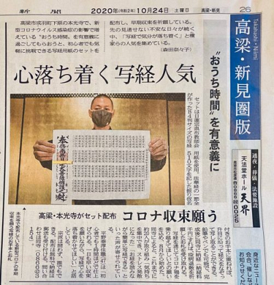 コロナ終息祈願お写経はじめています。 ご要望のかたは、住所をメール頂くかお電話などでご連絡頂…