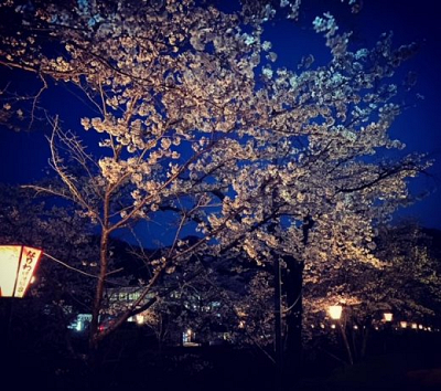 今日は満開を迎えた当山参道の白谷公園の夜桜です。 夜にはライトアップされ月夜も相(あい)まって…