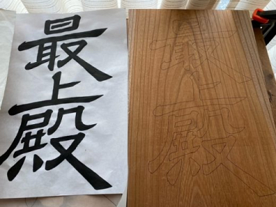 最上殿の扁額(へんがく)を直しています。 額の文字を書くのは初めてで本を取り寄せ勉強しました。 …