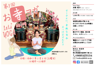 ご縁があり当山で初めての #ヨガ教室 を開催します。 緑豊かな成羽にて、すこやかで豊かな時…