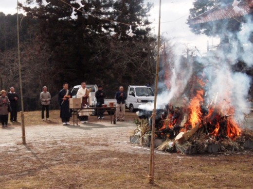 正月明けての恒例行事ですが、境内のお飾りや檀信徒の皆様が持ち寄られたお飾りをお火焚きしました。お供えした御餅も一緒に焼き、ぜんざいに入れて美味しくいただきました。皆様の一年間の無病息災をお祈りいたしました。