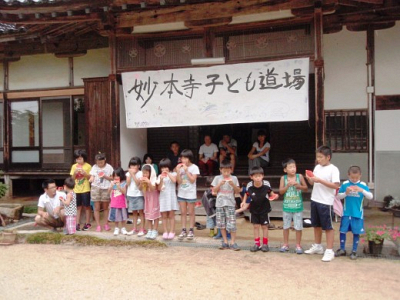 8月24日(土)恒例の子ども道場を開催いたしました。 参加者17名で、午前中はお経練習と唱題行を行…