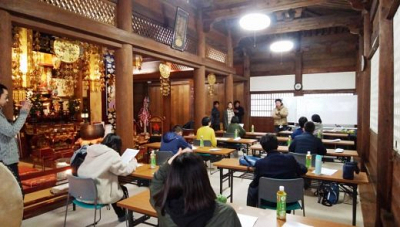 12月23日 当山の本堂(県指定重要文化財)を会場に、吉備中央町の町営塾kii+(キート)の授業が行…