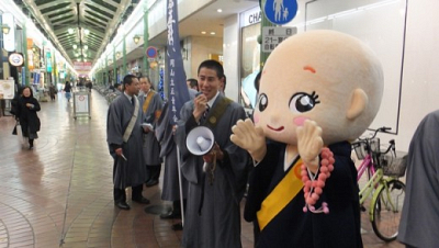 11月28日、岡山駅前と表町の天満屋前で街頭募金を行いました。 日蓮宗新聞のキャラクター『こぞ…