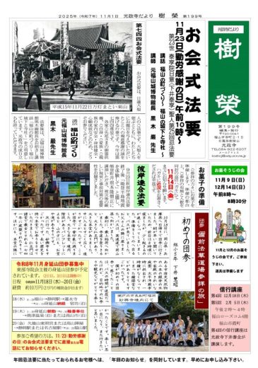 樹榮第199号 お会式法要 11月23日午前10時~ 法要後講話「福山の町づくり~福山城下と寺社~