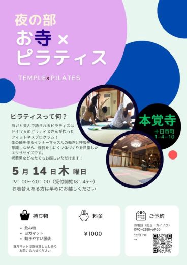 第35回【~心と体に向き合う時間~ お寺×ピラティス】のご案内(5月14日です)